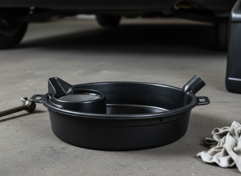 : 古いオイルを受ける容器。