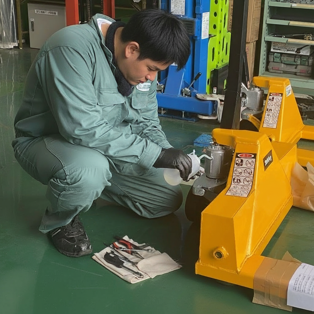 現場で毎日ハードに働くハンドリフト。そんな違和感を感じたら、それは「油圧オイルの交換サイン」かもしれません!