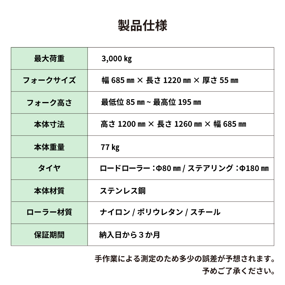 [3t]ハンドリフト685×1220㎜(ステンレス)