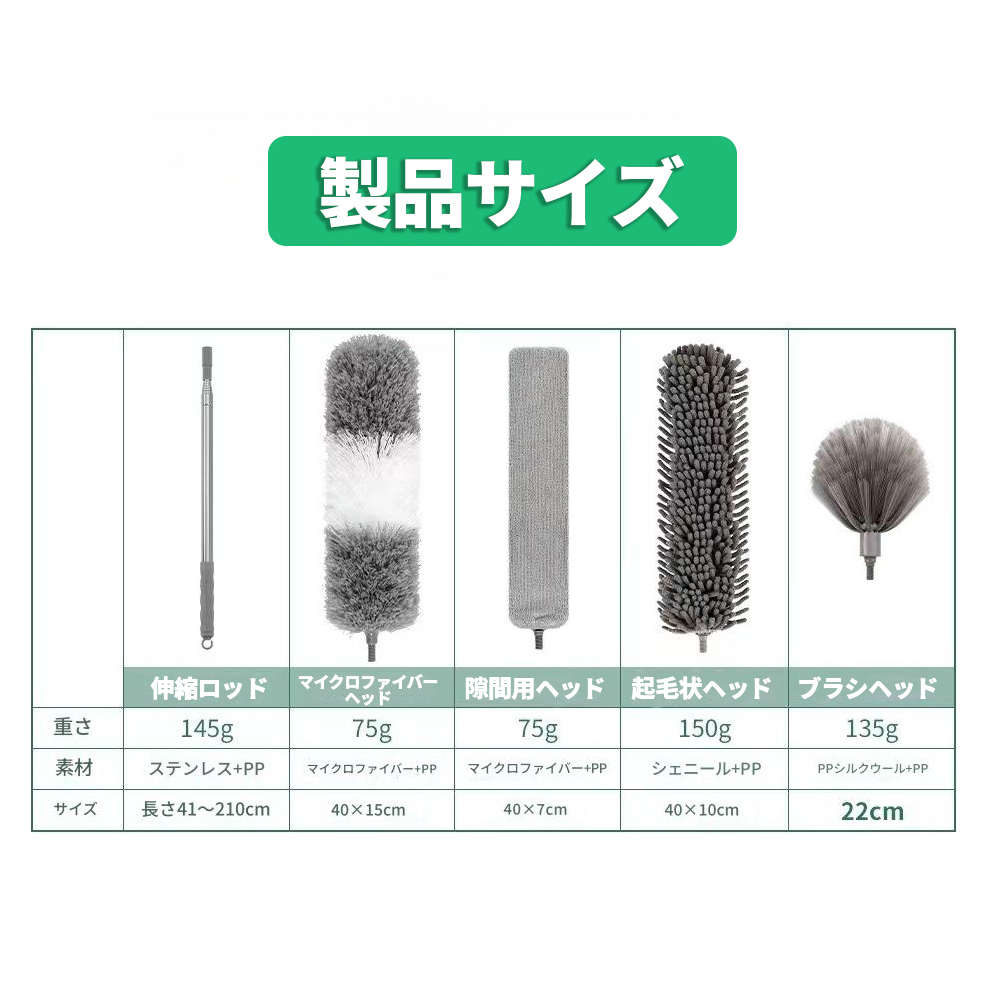 - 2mの伸縮で、高いところも楽々クリーニング!